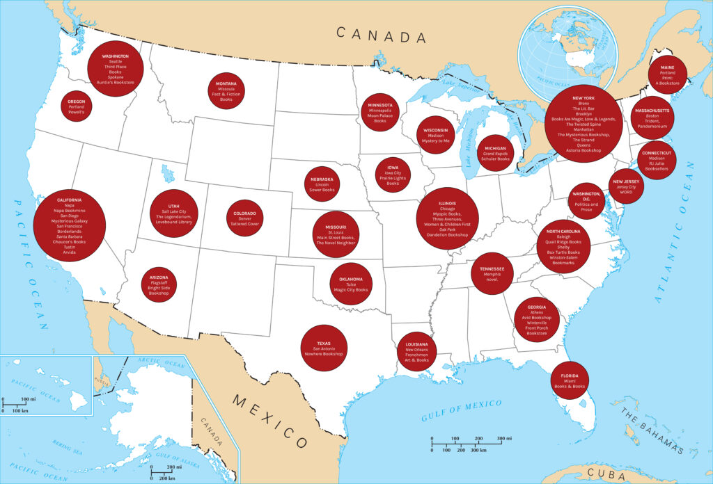 Note: this is by no means an exhaustive list of the wonderful bookstores we and our clients have visited across the U.S. and around the world. Fortunately, Bookshop.org is a 24/7 operation we heartily recommend, and they’re offering free standard shipping today and tomorrow.